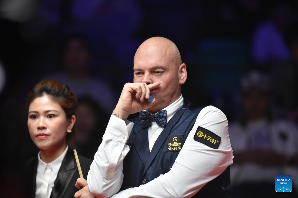 Stuart Bingham reacts during the semifinal match between England's Stuart Bingham and England's Judd Trump at the Snooker World Grand Prix 2025 in Hong Kong, south China, March 8, 2025. (Xinhua/Lo Ping Fai)
