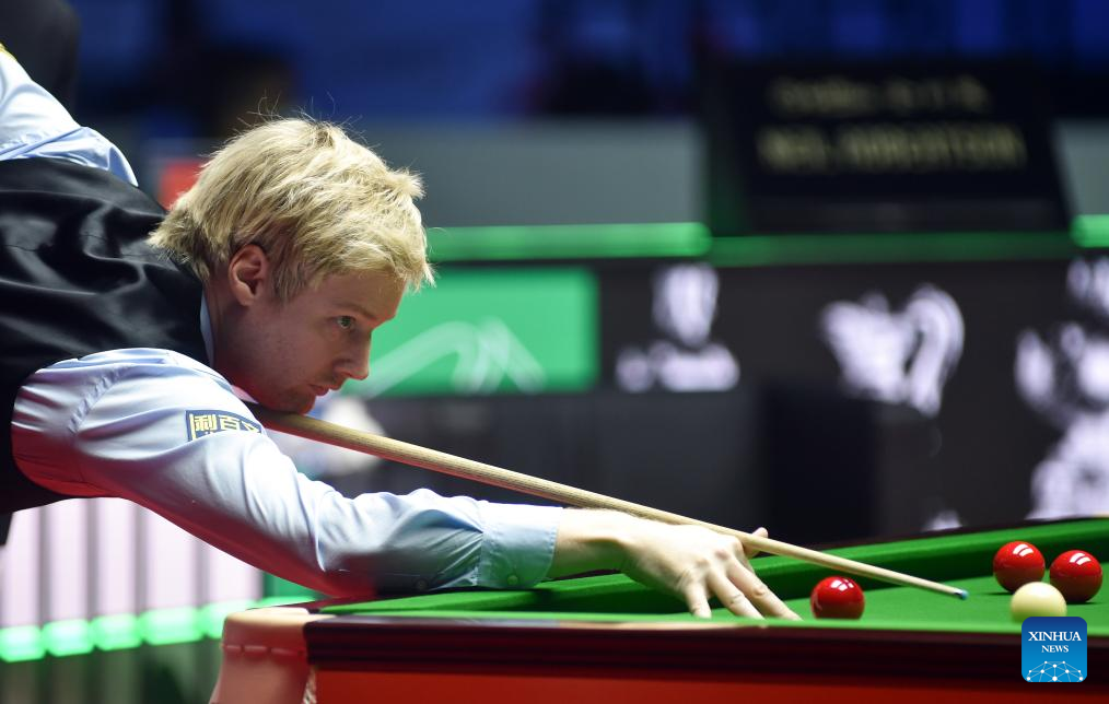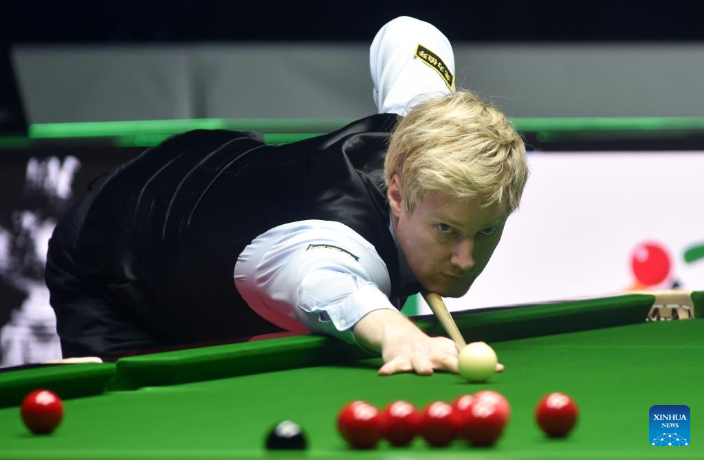 Neil Robertson plays a shot during the final between Neil Robertson of Australia and Stuart Bingham of England at the Snooker World Grand Prix 2025 in Hong Kong, south China, March 9, 2025. (Xinhua/Lo Ping Fai)