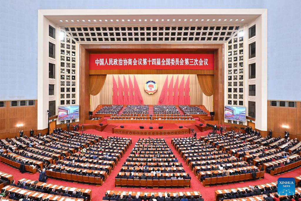 The closing meeting of the third session of the 14th National Committee of the Chinese People's Political Consultative Conference (CPPCC) is held at the Great Hall of the People in Beijing, capital of China, March 10, 2025. (Xinhua/Yue Yuewei)