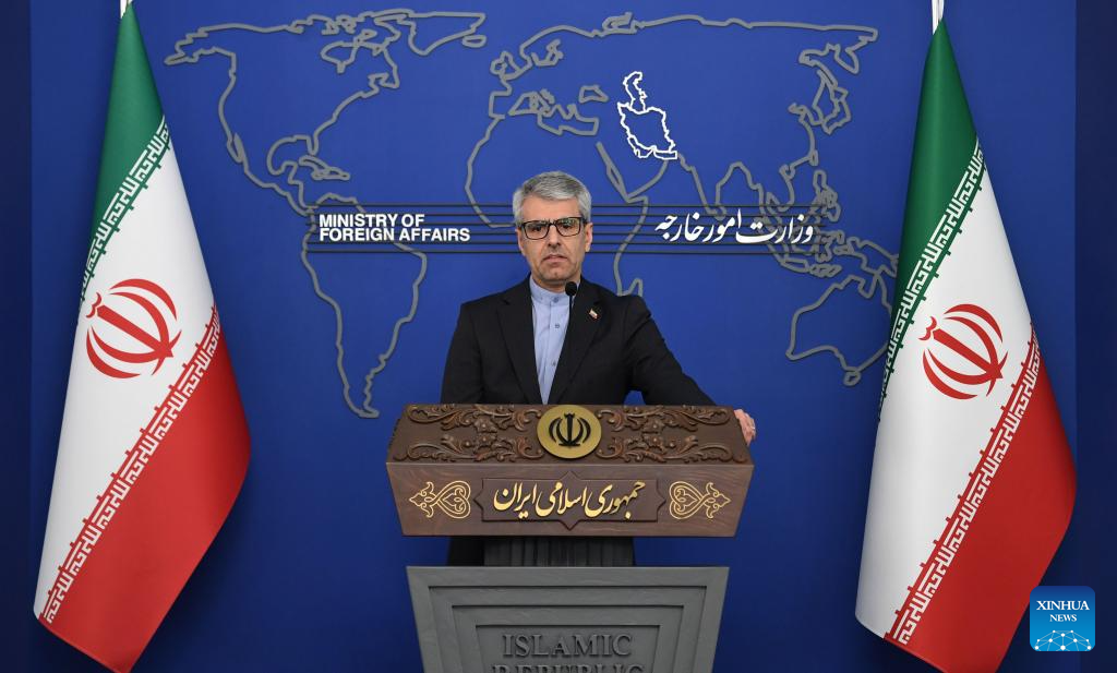 Iran's Foreign Ministry Spokesman Esmaeil Baghaei attends a press conference in Tehran, Iran, on March 10, 2025. Iran's Foreign Ministry spokesman, Esmaeil Baghaei, on Monday accused the United States of using so-called non-governmental organizations (NGOs) abroad to interfere in other countries' internal affairs. (Xinhua/Shadati)