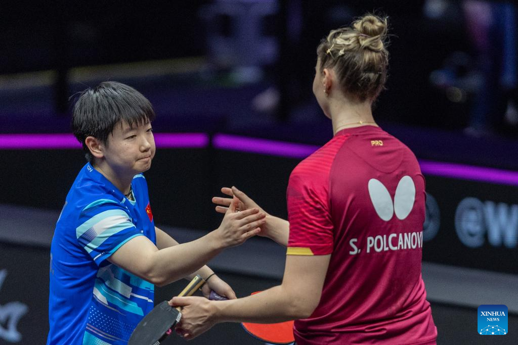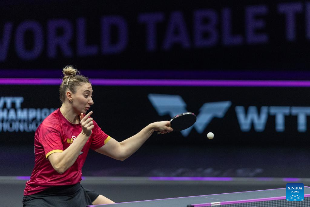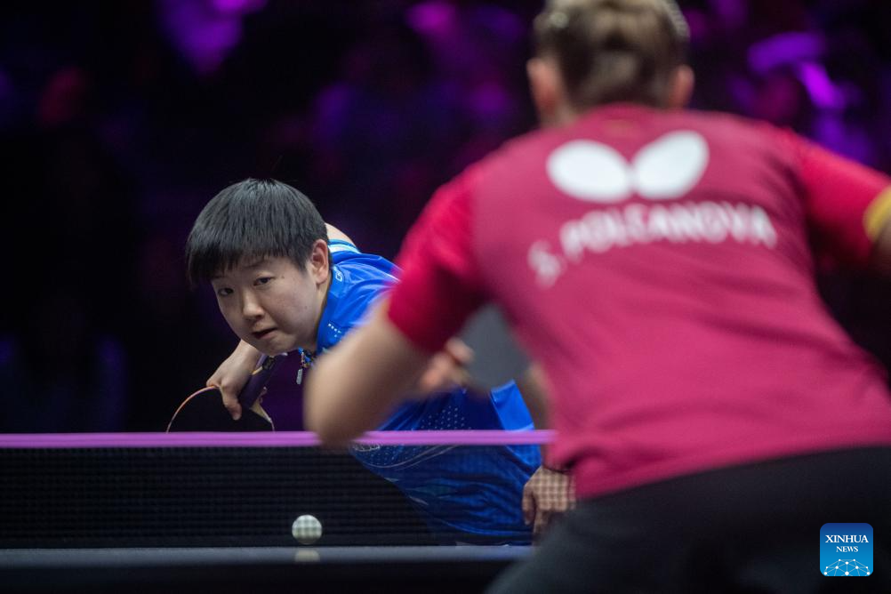 Sofia Polcanova of Austria hits a return during the women's singles round of 32 match against Sun Yingsha of China at the WTT Champions Chongqing 2025 in Chongqing, southwest China, March 11, 2025. (Xinhua/Huang Wei)