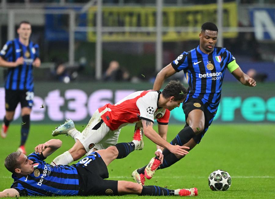 MADRID, March 11 (Xinhua) -- Paris Saint-Germain, FC Barcelona, Bayern Munich, and Inter Milan all secured their places in the Champions League quarterfinals on Tuesday night.