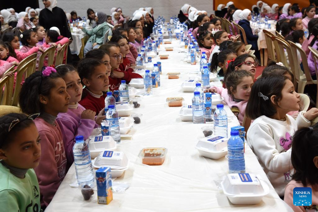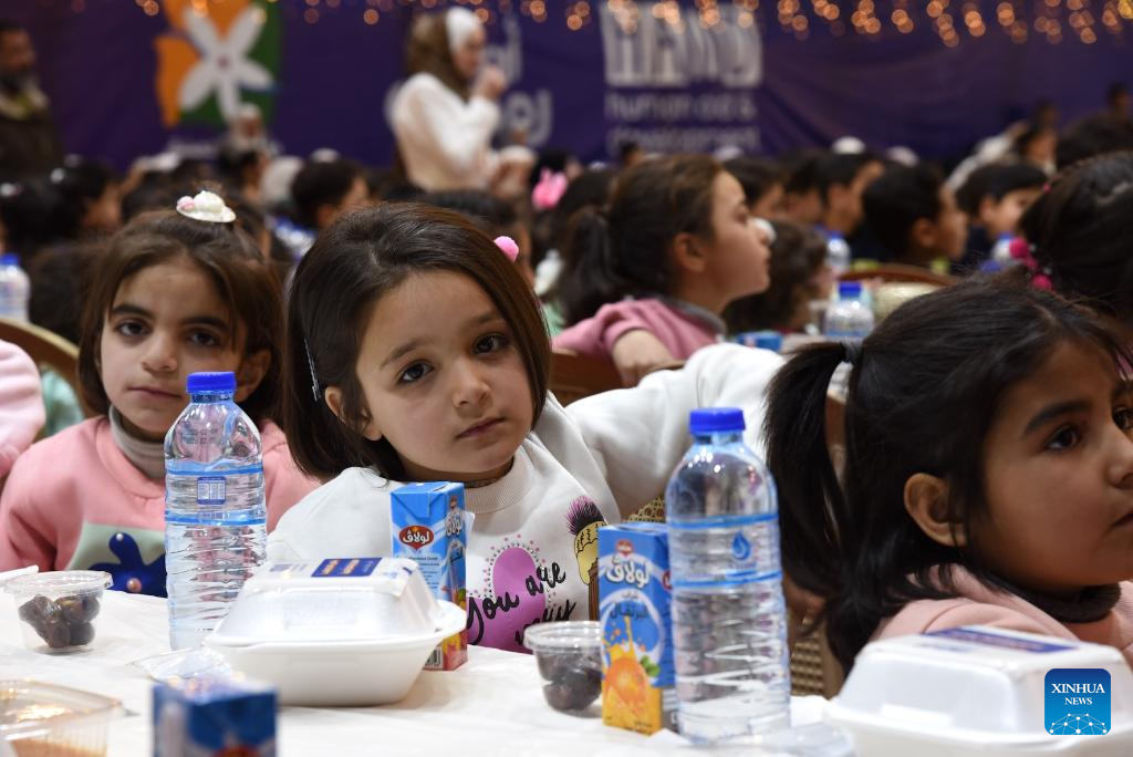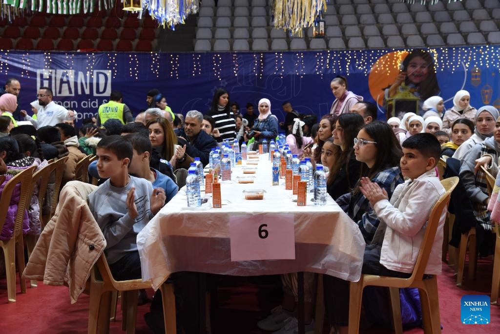 DAMASCUS, March 12 (Xinhua) -- A humanitarian organization hosted an iftar dinner for nearly 1,000 orphans in Damascus on Wednesday, aiming to bring joy and hope to young Syrians facing challenging times.