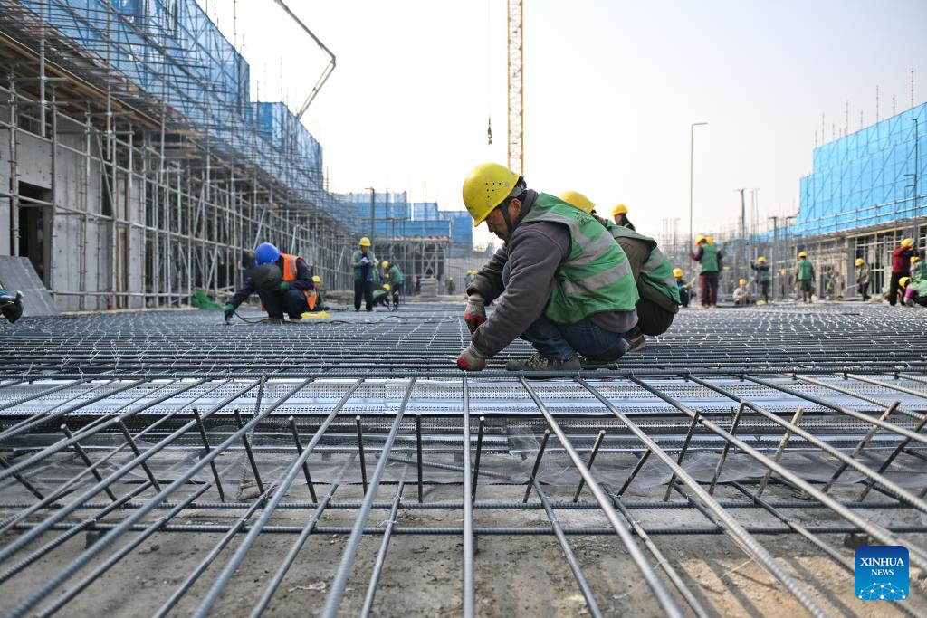 People work at the construction site of a college town in Xiong'an New Area, north China's Hebei Province, Feb. 27, 2025. (Xinhua/Mu Yu)