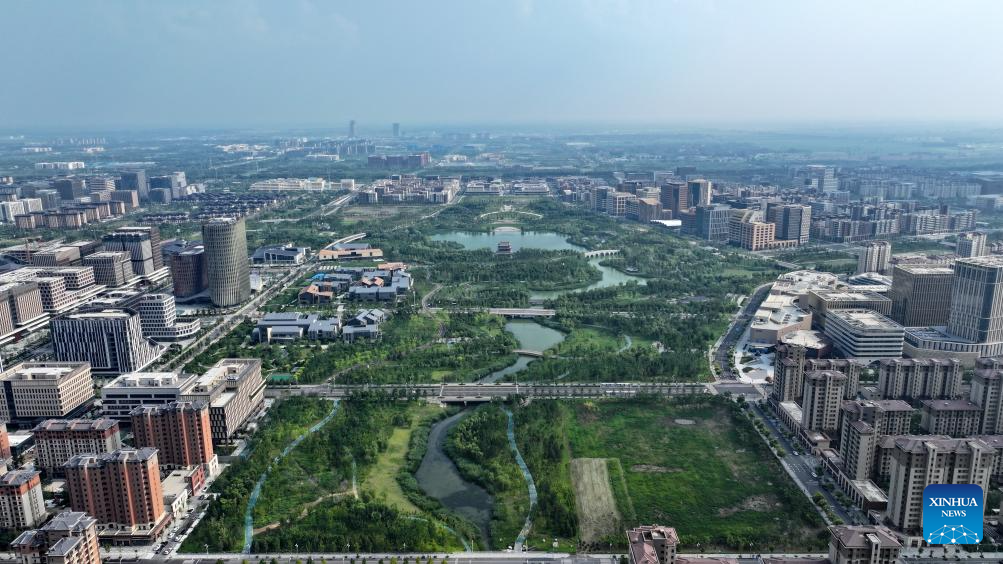 An aerial drone photo taken on July 31, 2024 shows Jinhu park in Xiong'an New Area, north China's Hebei Province. (Xinhua/Mu Yu)