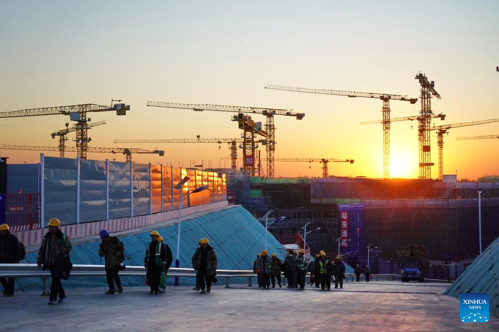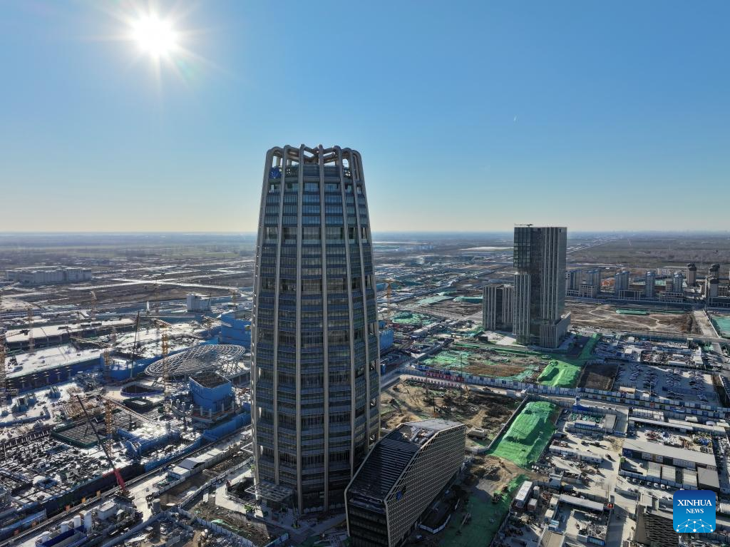This photo taken on Jan. 15, 2025 shows a construction site in Guomao area of Xiong'an New Area, north China's Hebei Province. (Xinhua/Mu Yu)