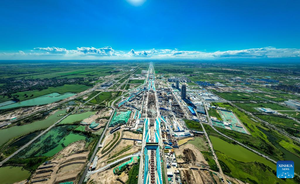 An aerial drone photo taken on Aug. 12, 2024 shows a construction site in the start-up zone of Xiong'an New Area, north China's Hebei Province. (Xinhua/Mu Yu)