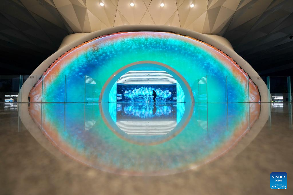 A man visits the Xiong'an Urban Computing Center in Xiong'an New Area, north China's Hebei Province, Feb. 26, 2025. (Xinhua/Mu Yu)