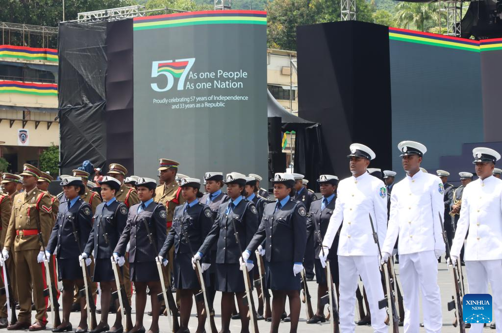 Mauritian army takes part in a parade during a celebration of the country's 57th anniversary of independence in Port Louis, Mauritius, on March 12, 2025. (Photo by Ally Soobye/Xinhua)