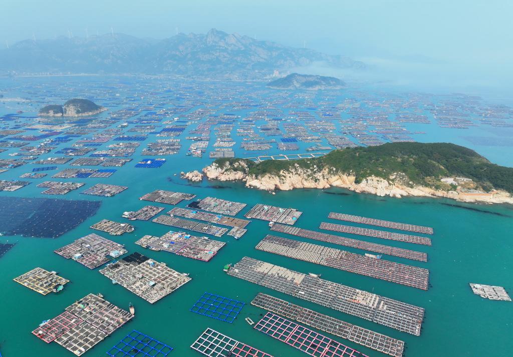 An aerial drone photo shows a panoramic view of an abalone breeding area in Lianjiang County, southeast China's Fujian Province, March 12, 2025. (Xinhua/Lin Shanchuan)