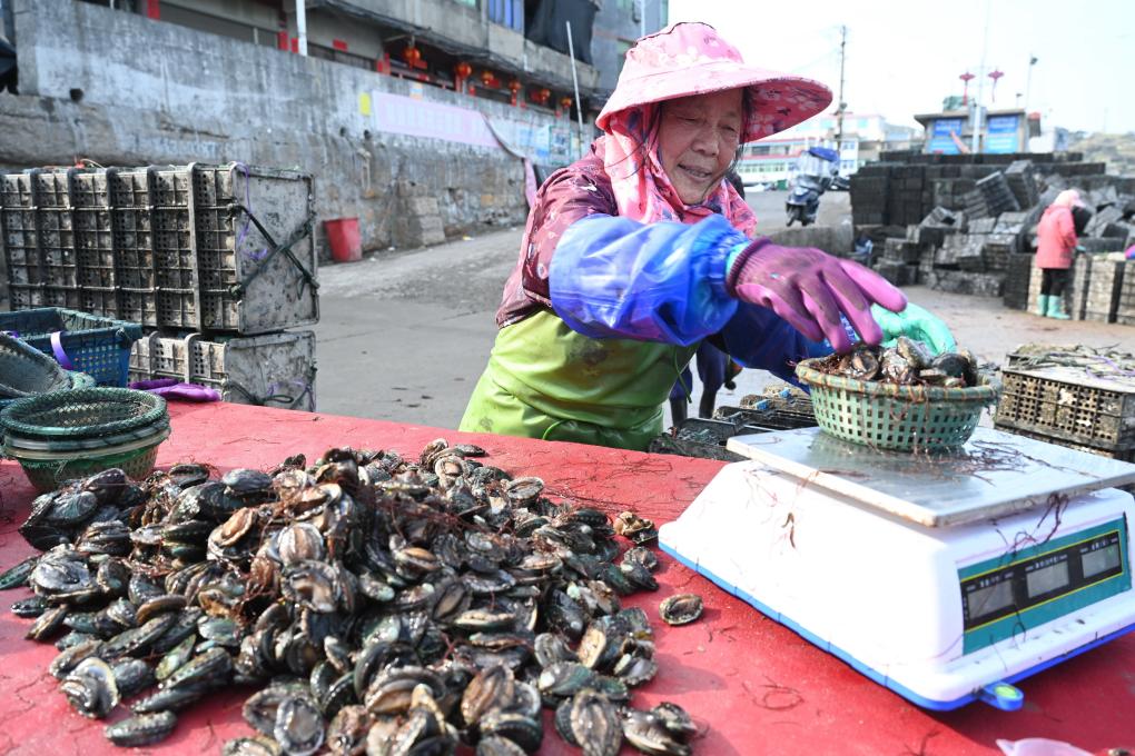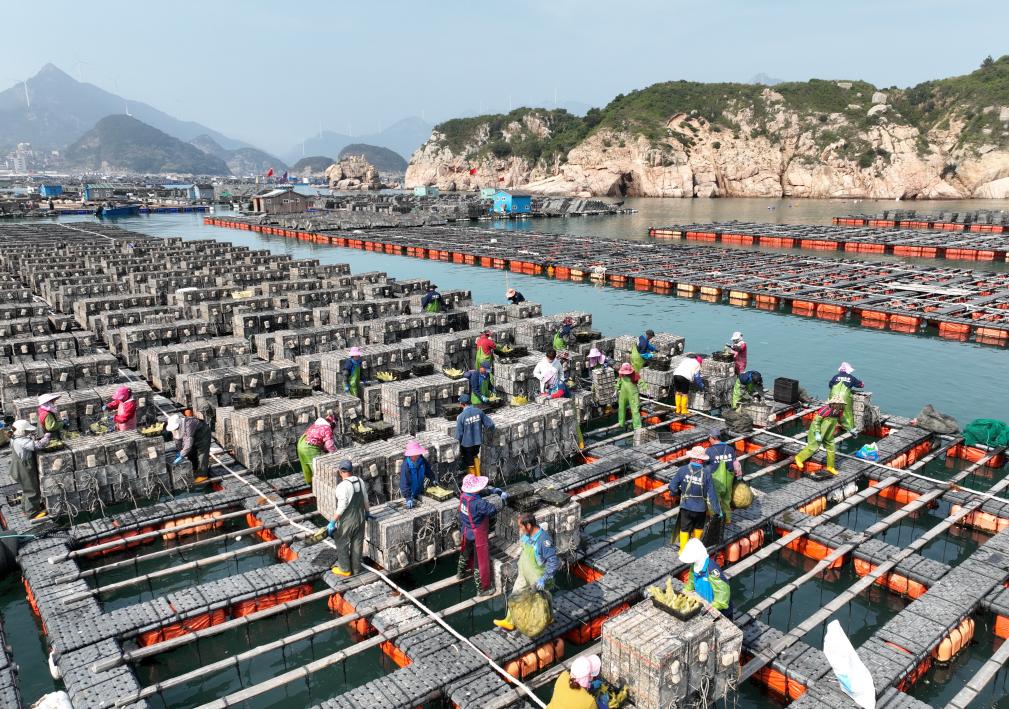 An aerial drone photo shows a view of an abalone breeding area in Lianjiang County, southeast China's Fujian Province, March 12, 2025. (Xinhua/Lin Shanchuan)A woman sorts out abalones at a wharf in Lianjiang County, southeast China's Fujian Province, March 12, 2025. (Xinhua/Lin Shanchuan)An aerial drone photo taken on March 12, 2025 shows fishermen throwing abalone fry into the sea in Lianjiang County, southeast China's Fujian Province. (Xinhua/Lin Shanchuan)An aerial drone photo shows a view of an abalone breeding area in Lianjiang County, southeast China's Fujian Province, March 12, 2025. (Xinhua/Lin Shanchuan)Fishermen feed abalones in Lianjiang County, southeast China's Fujian Province, March 12, 2025. (Xinhua/Lin Shanchuan)