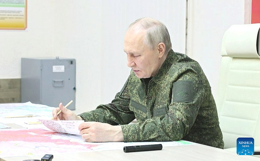 MOSCOW, March 12 (Xinhua) -- Russian President Vladimir Putin on Wednesday proposed establishing a security zone along Russia's state border and demanded the complete expulsion of enemy forces from the Kursk region during a visit to a military command center overseeing operations in the area.