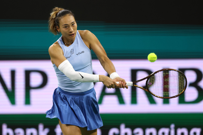 INDIAN WELLS, California, March 13 (Xinhua) -- China's Zheng Qinwen bowed out of Indian Wells with a 6-3, 6-3 quarterfinal loss to second-ranked Iga Swiatek of Poland on Thursday.