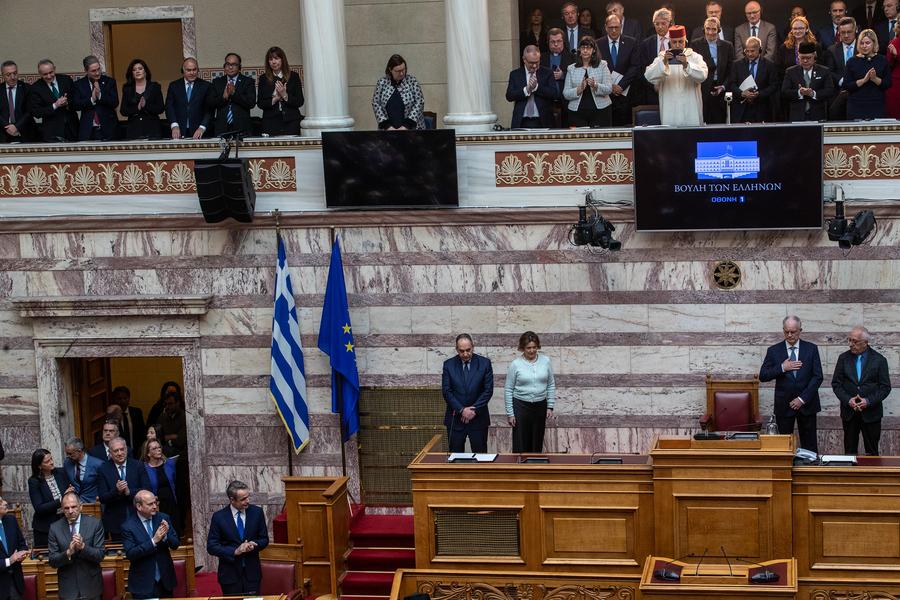 Tassoulas, a member of the ruling conservative New Democracy party, took the oath of office in parliament after winning the election on Feb. 12.