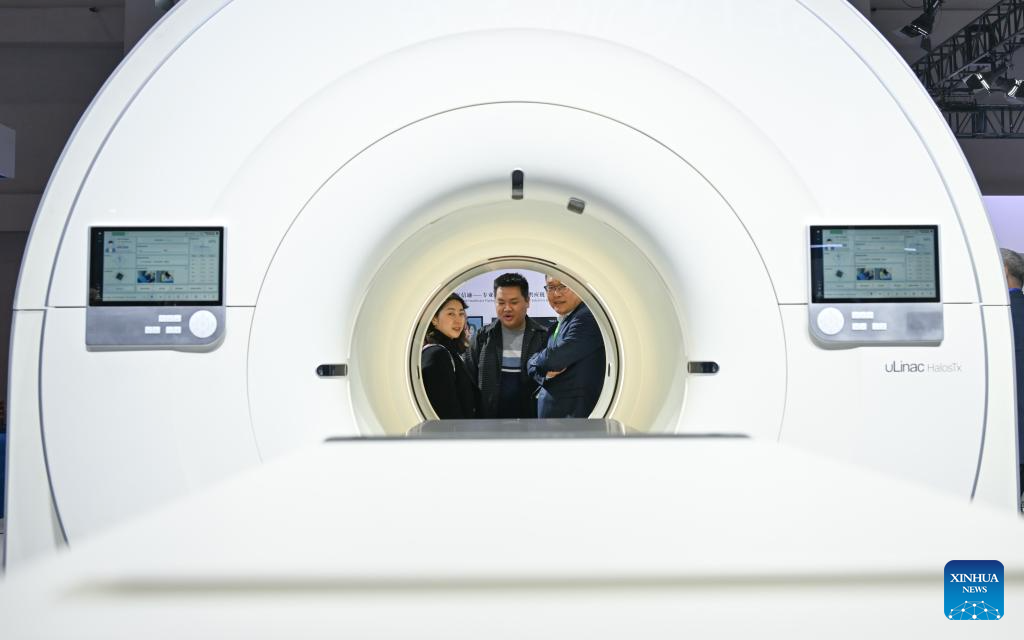 People visit the 2025 China Medical Equipment Conference & Medical Equipment Exhibition held at Chongqing International Expo Center in southwest China's Chongqing Municipality, March 14, 2025. The four-day exhibition kicked off here on Thursday with a total of 34 professional exhibition areas, including medical imaging, radiotherapy, medical examination, surgical equipment, hospital Internet of Things construction, artificial intelligence and medical robots, etc., showcasing over 10,000 new products, new technologies, new applications and new methods in the field of medical equipment. (Xinhua/Wang Quanchao)
