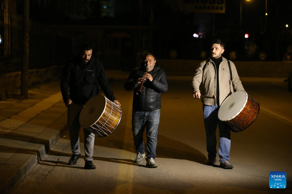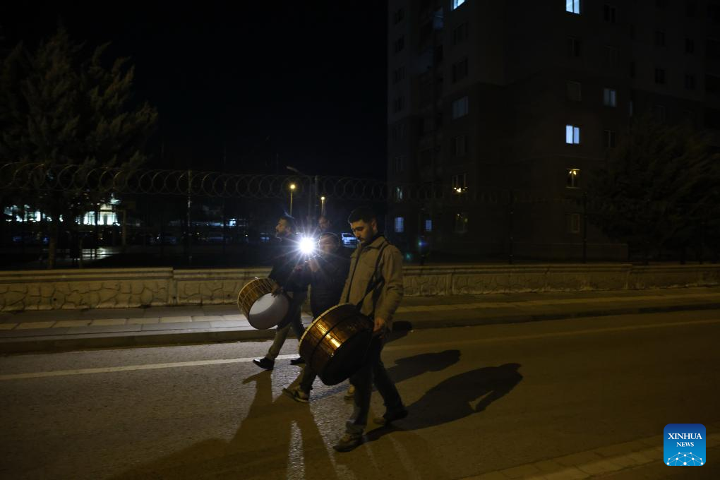 ANKARA, March 13 (Xinhua) -- In the stillness of the night, the rhythmic beats of drums echo through the streets of Türkiye, rousing the faithful for their pre-dawn meal during the Muslim holy month of Ramadan.