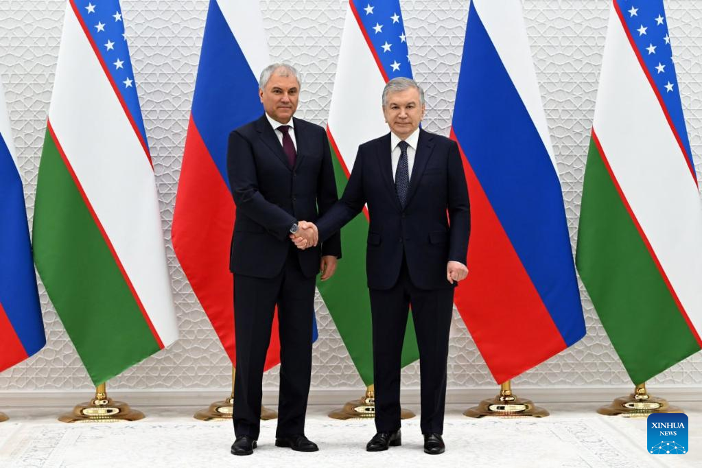 TASHKENT, March 15 (Xinhua) -- Uzbek President Shavkat Mirziyoyev met with Chairman of the Russian State Duma Vyacheslav Volodin on Friday, with a willingness to expand cooperation between their parliaments.