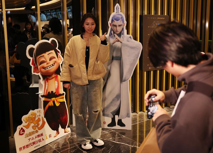 TOKYO, March 15 (Xinhua) -- Chinese animated blockbuster "Ne Zha 2," the highest-grossing animated film of all time, hit Japanese movie screens on Friday, attracting a large crowd of moviegoers.