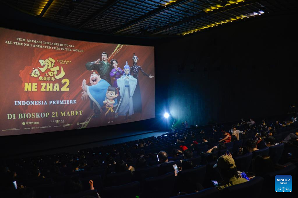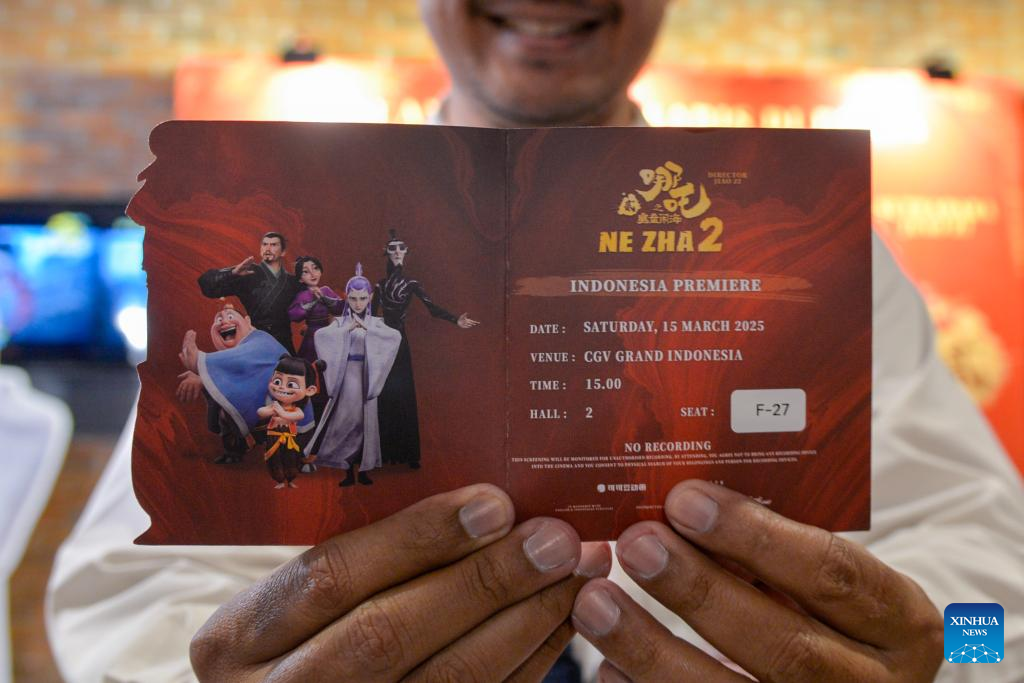 JAKARTA, March 15 (Xinhua) -- Chinese animated blockbuster "Ne Zha 2," the highest-grossing animated film of all time, premiered here on Saturday, with a packed theater of eager moviegoers.