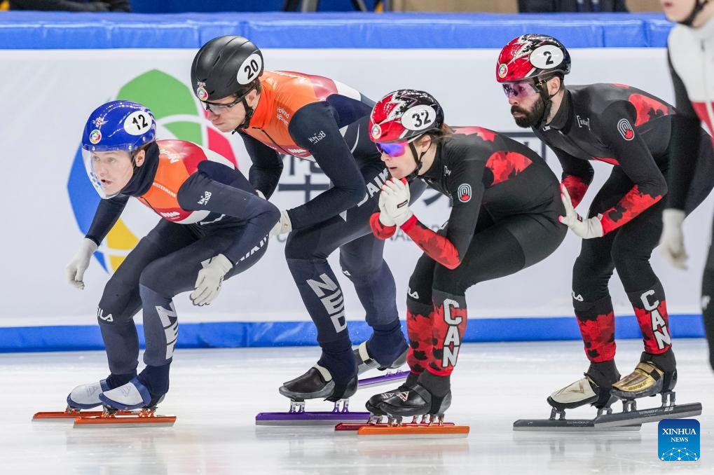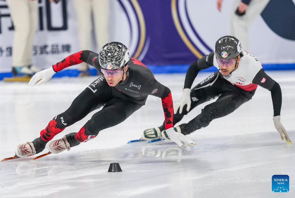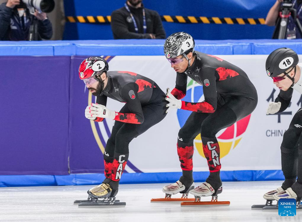 William Dandjinou (L) of Canada competes during the Mixed Team Relay final A at the ISU World Short Track Speed Skating Championships 2025 in Beijing, China, March 16, 2025. (Xinhua/Sun Fei)