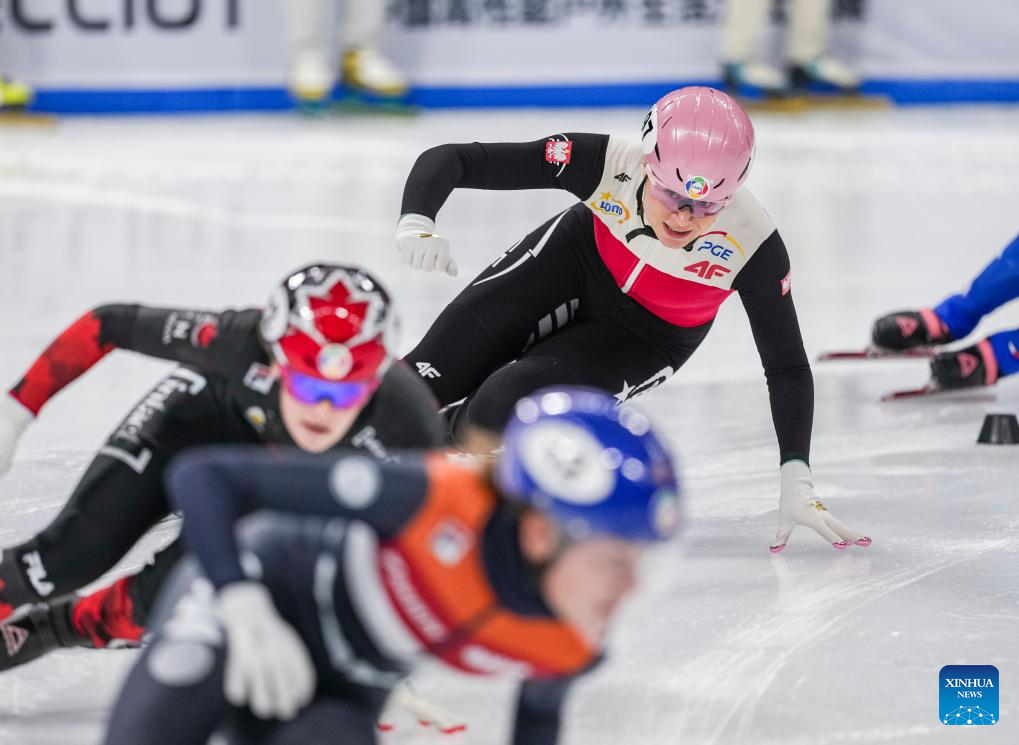 Natalia Maliszewska (R) of Poland competes during the Mixed Team Relay final A at the ISU World Short Track Speed Skating Championships 2025 in Beijing, China, March 16, 2025. (Xinhua/Sun Fei)