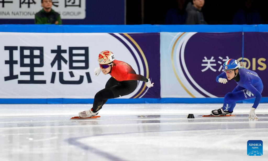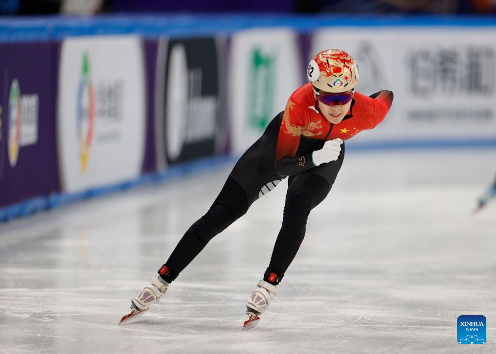 Zhang Chutong of China competes during the women's 1500m final B at the ISU World Short Track Speed Skating Championships 2025 in Beijing, China, March 16, 2025. (Xinhua/Ding Xu)