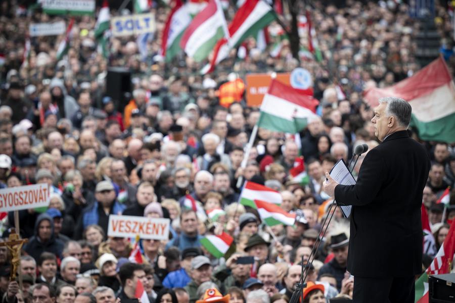 BUDAPEST, March 15 (Xinhua) -- Hungarian Prime Minister Viktor Orban vowed to defend Hungary's sovereignty and resist external control, describing the European Union (EU) as an empire seeking domination, like past foreign powers.