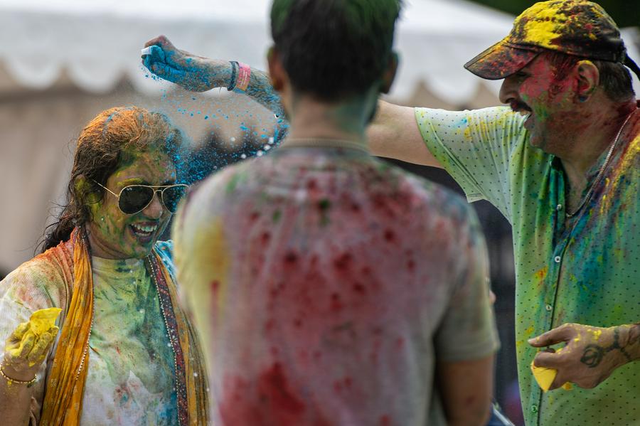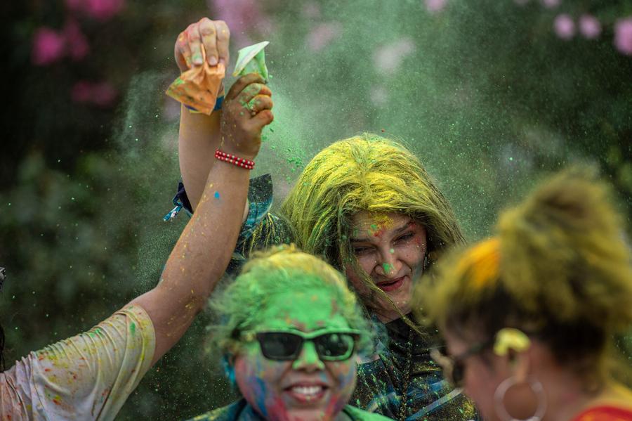 A man throws colored powder to a woman during the Holi Festival at Gambir Expo in Jakarta, Indonesia on March 16, 2025. (Xinhua/Veri Sanovri)People throw colored powder to each other during the Holi Festival at Gambir Expo in Jakarta, Indonesia on March 16, 2025. (Xinhua/Veri Sanovri)People spread colored powder during the Holi Festival at Gambir Expo in Jakarta, Indonesia on March 16, 2025. (Xinhua/Veri Sanovri)People smeared with colored powder celebrate the Holi Festival in Medan, North Sumatra, Indonesia, March 16, 2025. (Photo by Byma/Xinhua)A woman with colorful powder on her face is pictured during Holi Festival at Gambir Expo in Jakarta, Indonesia on March 16, 2025. (Xinhua/Veri Sanovri)■