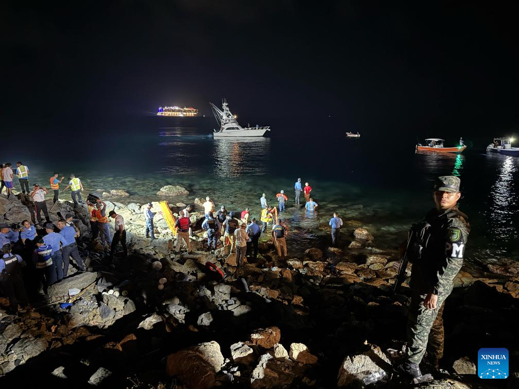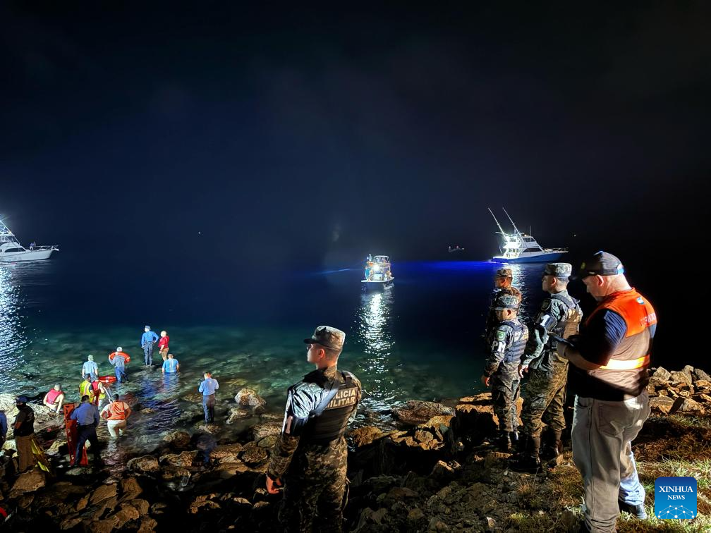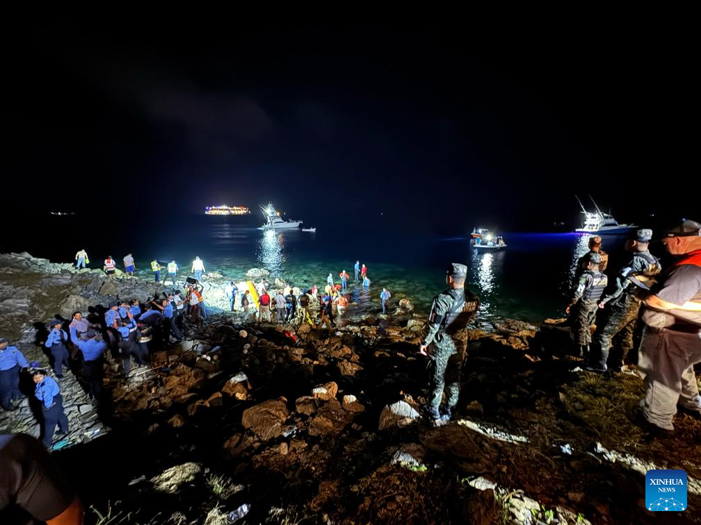 Honduran National Police officers and rescue teams from the Honduran government work in rescue operations after a small plane crashed into the sea, on Roatan island, Honduras, on March 17, 2025. A small plane lost control and crashed on Monday evening after taking off on Roatan Island in northern Honduras, said Octavio Pineda, minister of Infrastructure and Transportation of Honduras. (Str/Xinhua)
