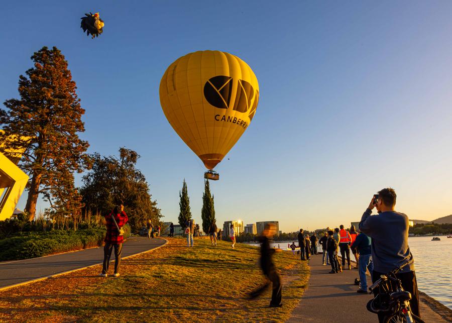 Hot air balloons fly over the Lake Burley Griffin during the annual Canberra Balloon Spectacular in Canberra, Australia, March 18, 2025. (Chu Chen/Xinhua)A person and his dog watch the hot air balloons in the sky during the annual Canberra Balloon Spectacular in Canberra, Australia, March 15, 2025. (Chu Chen/Xinhua)A hot air balloon flies in the sky during the annual Canberra Balloon Spectacular in Canberra, Australia, March 18, 2025. (Chu Chen/Xinhua)Hot air balloons fly over the Lake Burley Griffin during the annual Canberra Balloon Spectacular in Canberra, Australia, March 18, 2025. (Chu Chen/Xinhua)Hot air balloons fly over the National Museum of Australia during the annual Canberra Balloon Spectacular in Canberra, Australia, March 18, 2025. (Chu Chen/Xinhua)■