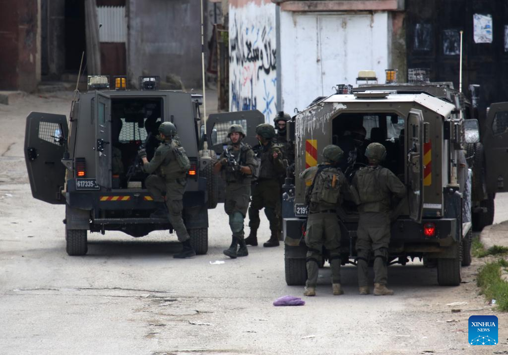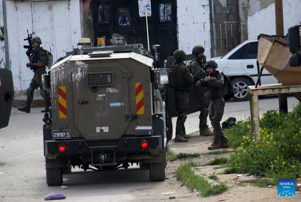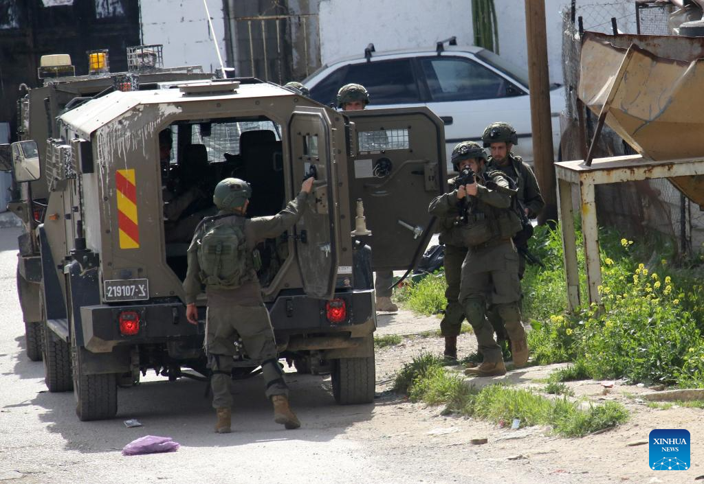 Israeli soldiers are seen during a military operation in the Askar al-Jadid camp, east of Nablus in the West Bank, on March 18, 2025. (Photo by Nidal Eshtayeh/Xinhua)