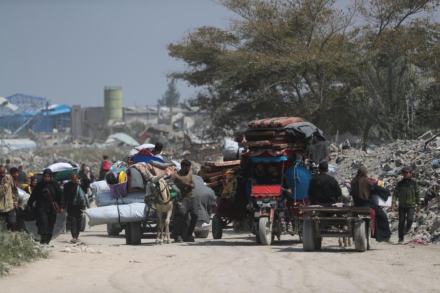 GAZA, March 19 (Xinhua) -- Palestinians in Gaza are facing another displacement following evacuation orders by the Israeli army.