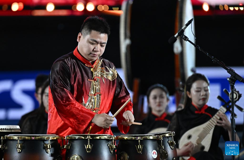An artist performs during the opening ceremony of the 2025 World Athletics Indoor Championships in Nanjing, east China's Jiangsu Province, March 21, 2025. (Xinhua/Song Yanhua)