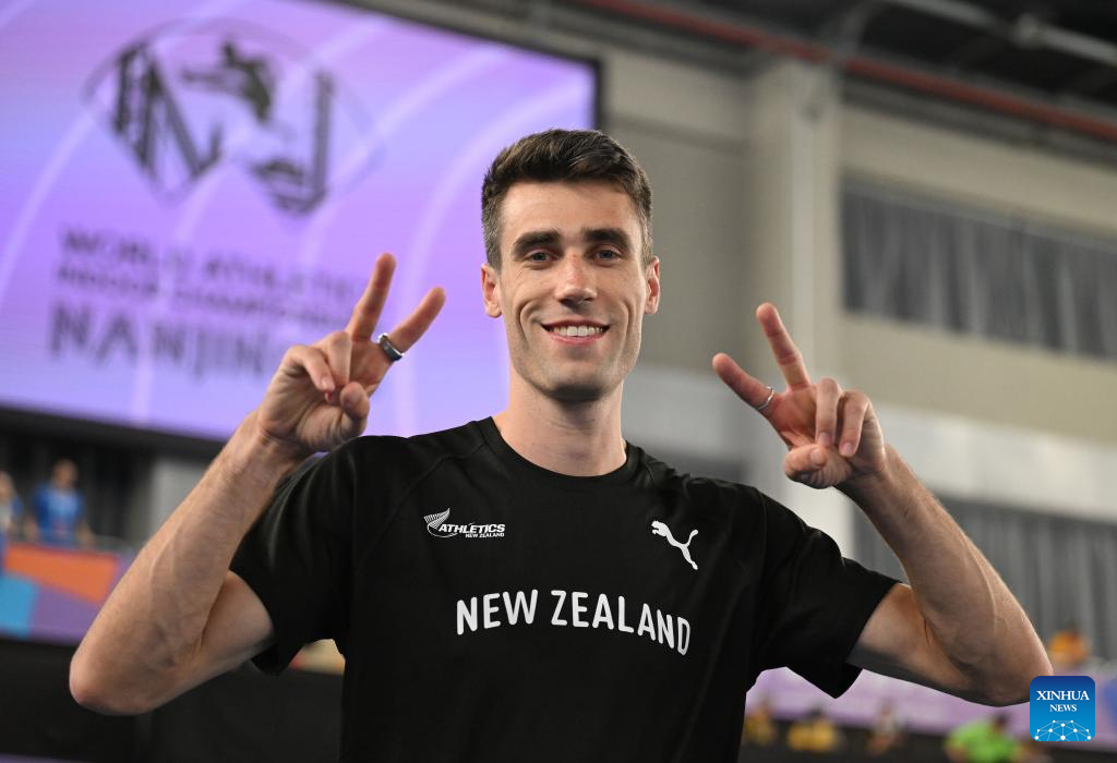 Hamish Kerr of New Zealand reacts before the men's high jump final the 2025 World Athletics Indoor Championships in Nanjing, east China's Jiangsu Province, March 21, 2025. (Xinhua/Song Yanhua)