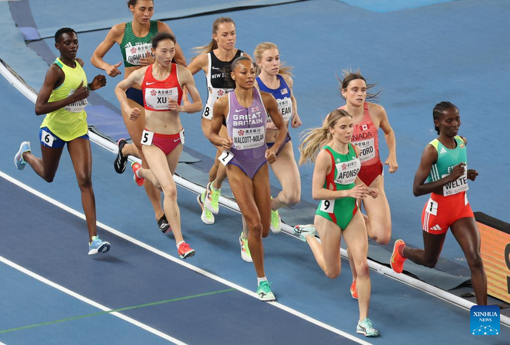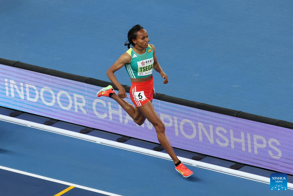Gudaf Tsegay of Ethiopia competes during the women's 1500m round 1 at the 2025 World Athletics Indoor Championships in Nanjing, east China's Jiangsu Province, March 21, 2025. (Xinhua/Li Ming)