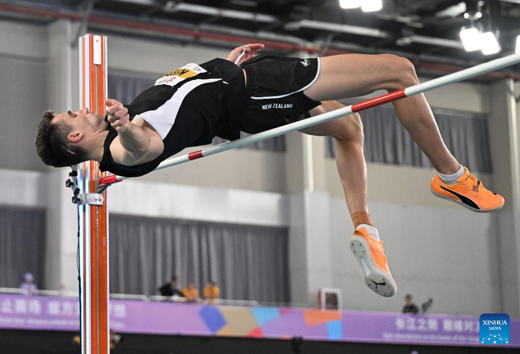 Hamish Kerr of New Zealand competes during the men's high jump final at the 2025 World Athletics Indoor Championships in Nanjing, east China's Jiangsu Province, March 21, 2025. (Xinhua/Song Yanhua)