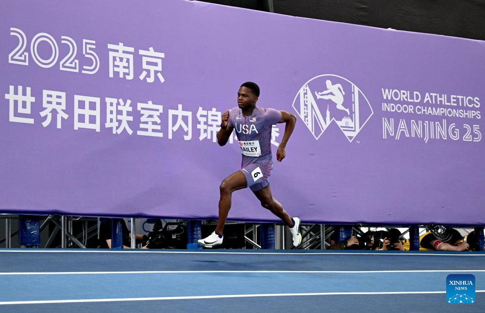 Christopher Bailey of the United States competes during the men's 400m heats during the 2025 World Athletics Indoor Championships in Nanjing, east China's Jiangsu Province, March 21, 2025. (Xinhua/Song Yanhua)