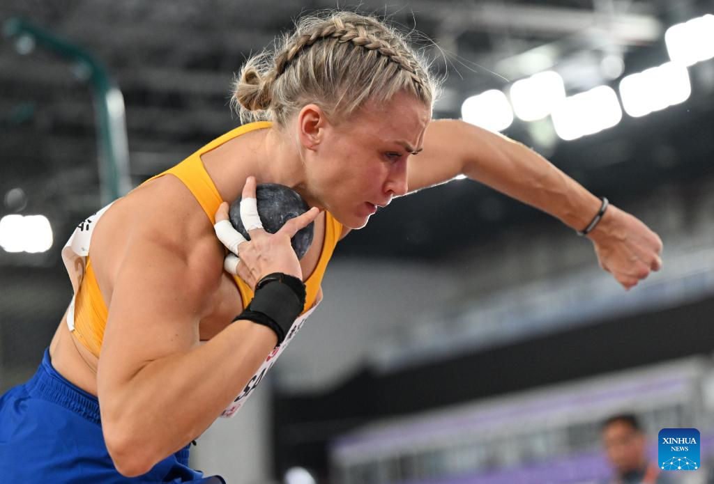 Saga Vanninen of Finland competes during the women's Pentathlon shot put at the 2025 World Athletics Indoor Championships in Nanjing, east China's Jiangsu Province, March 21, 2025. (Xinhua/Song Yanhua)