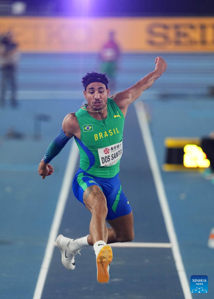 Almir Dos Santos of Brazil competes during the men's triple jump final at the 2025 World Athletics Indoor Championships in Nanjing, east China's Jiangsu Province, March 21, 2025. (Xinhua/Yang Lei)