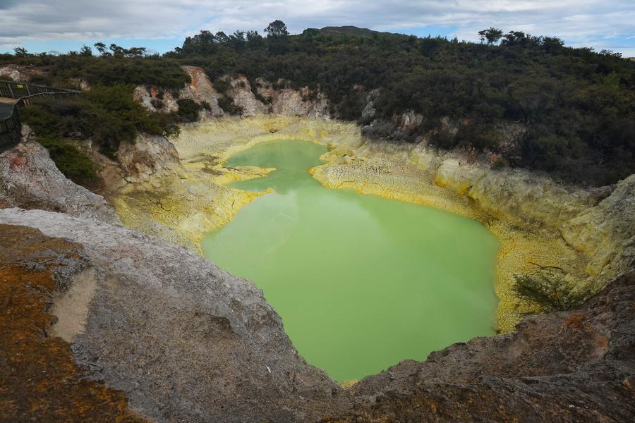 This photo taken on March 20, 2025 shows a view of the Wai-O-Tapu Thermal Wonderland in Rotorua, New Zealand. (Xinhua/Long Lei)This photo taken on March 20, 2025 shows a view of the Wai-O-Tapu Thermal Wonderland in Rotorua, New Zealand. (Xinhua/Long Lei)People visit the Wai-O-Tapu Thermal Wonderland in Rotorua, New Zealand, March 20, 2025. (Xinhua/Long Lei)■