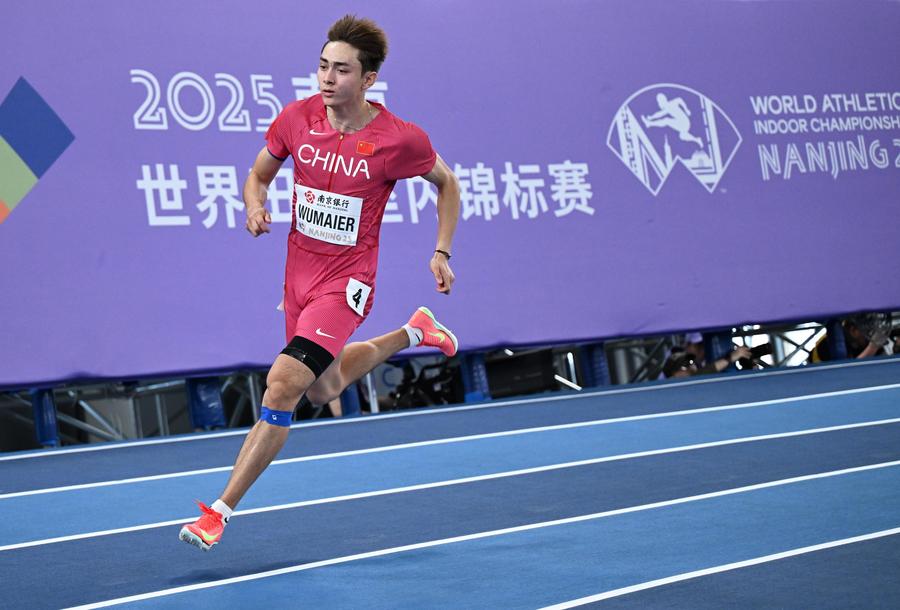 The 18-year-old rising sprint star from China's Xinjiang Uygur Autonomous Region clocked a time of 48.73 seconds in the preliminary round, finishing fourth in his heat and missing out on the semifinals, as the 2025 World Athletics Indoor Championships kicked off Friday in Nanjing, east China's Jiangsu Province.