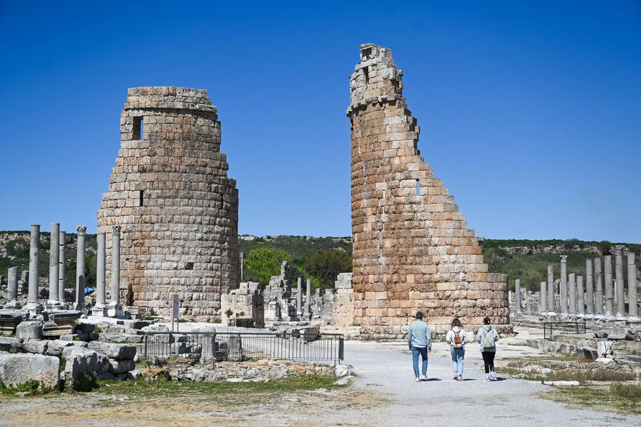 Tourists visit the Perge archaeological site in Antalya, Türkiye, March 21, 2025. The Perge archaeological site, located in Türkiye's Antalya province, can be dated back to the early Bronze Age. It is an important sample for studying urban planning in ancient Greece and Rome. (Xinhua/Liu Lei) Tourists visit the Perge archaeological site in Antalya, Türkiye, March 21, 2025. The Perge archaeological site, located in Türkiye's Antalya province, can be dated back to the early Bronze Age. It is an important sample for studying urban planning in ancient Greece and Rome. (Xinhua/Liu Lei) This photo taken on March 21, 2025 shows a view of the Aspendos Antique Theater in Antalya, Türkiye. (Xinhua/Liu Lei) This photo taken on March 21, 2025 shows a view of the Aspendos Antique Theater in Antalya, Türkiye. (Xinhua/Liu Lei) An aerial drone photo taken on March 21, 2025 shows a view of the Aspendos Antique Theater in Antalya, Türkiye. (Xinhua/Liu Lei) Tourists visit the Aspendos Antique Theater in Antalya, Türkiye, March 21, 2025. (Xinhua/Liu Lei)■