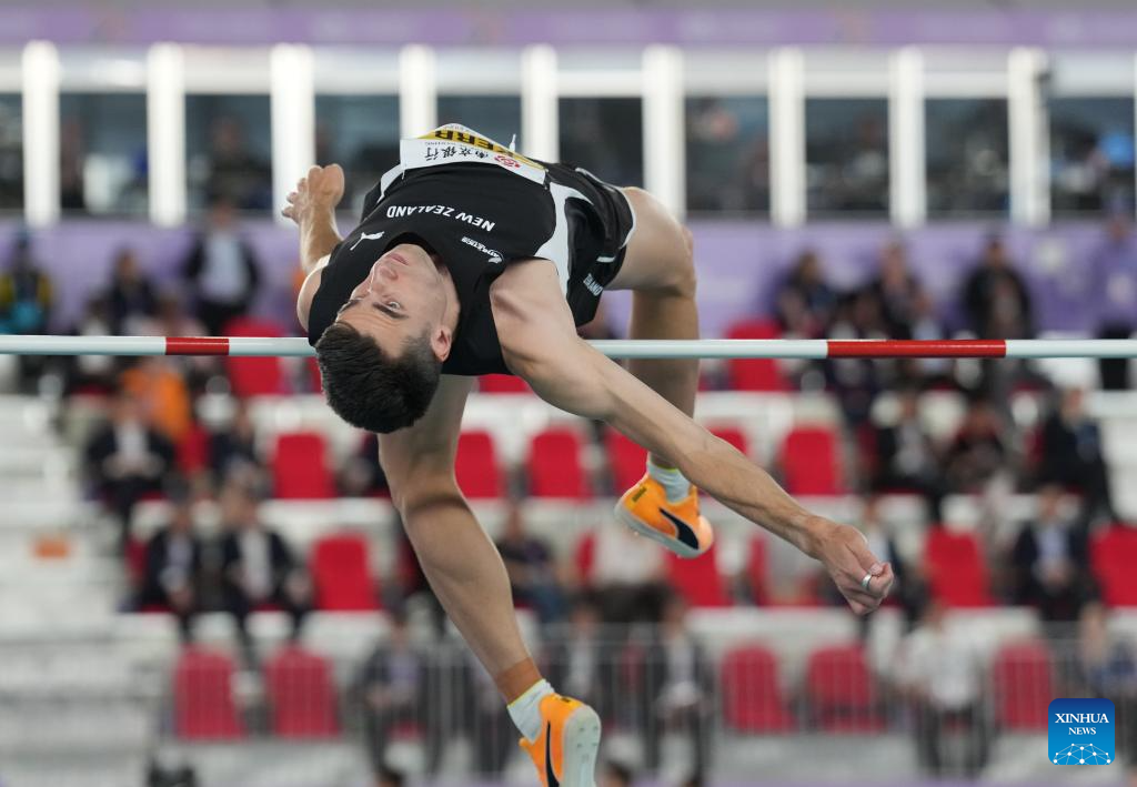 Hamish Kerr of New Zealand competes during the men's high jump final at the 2025 World Athletics Indoor Championships in Nanjing, east China's Jiangsu Province, March 21, 2025. (Xinhua/Yang Lei)