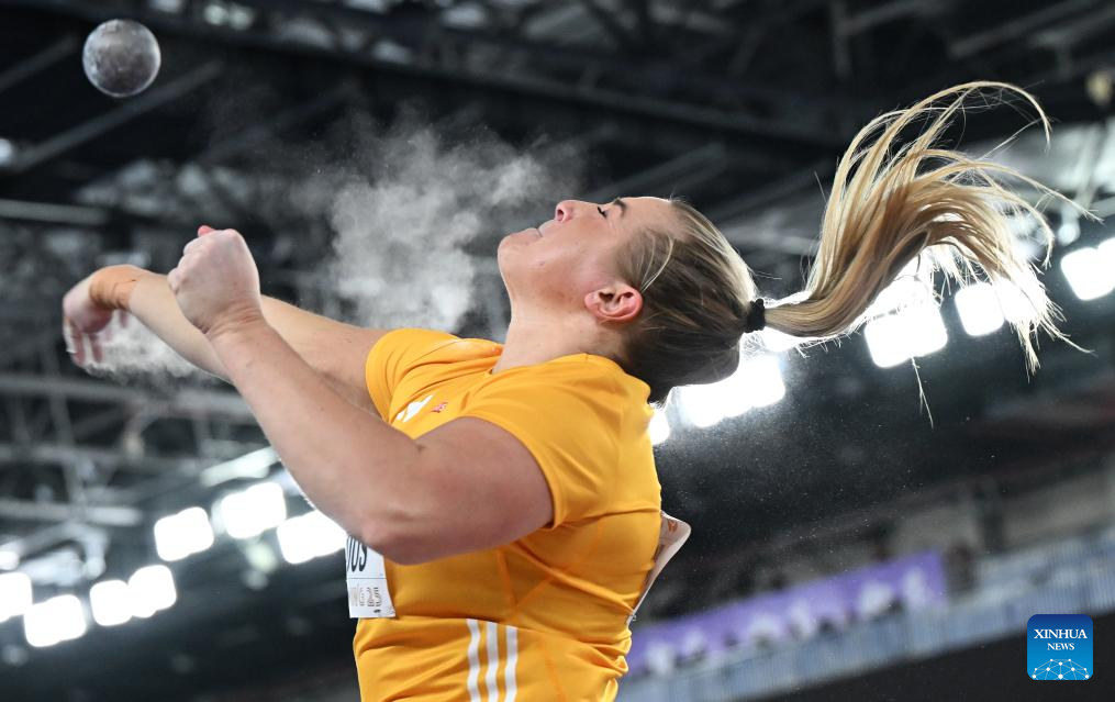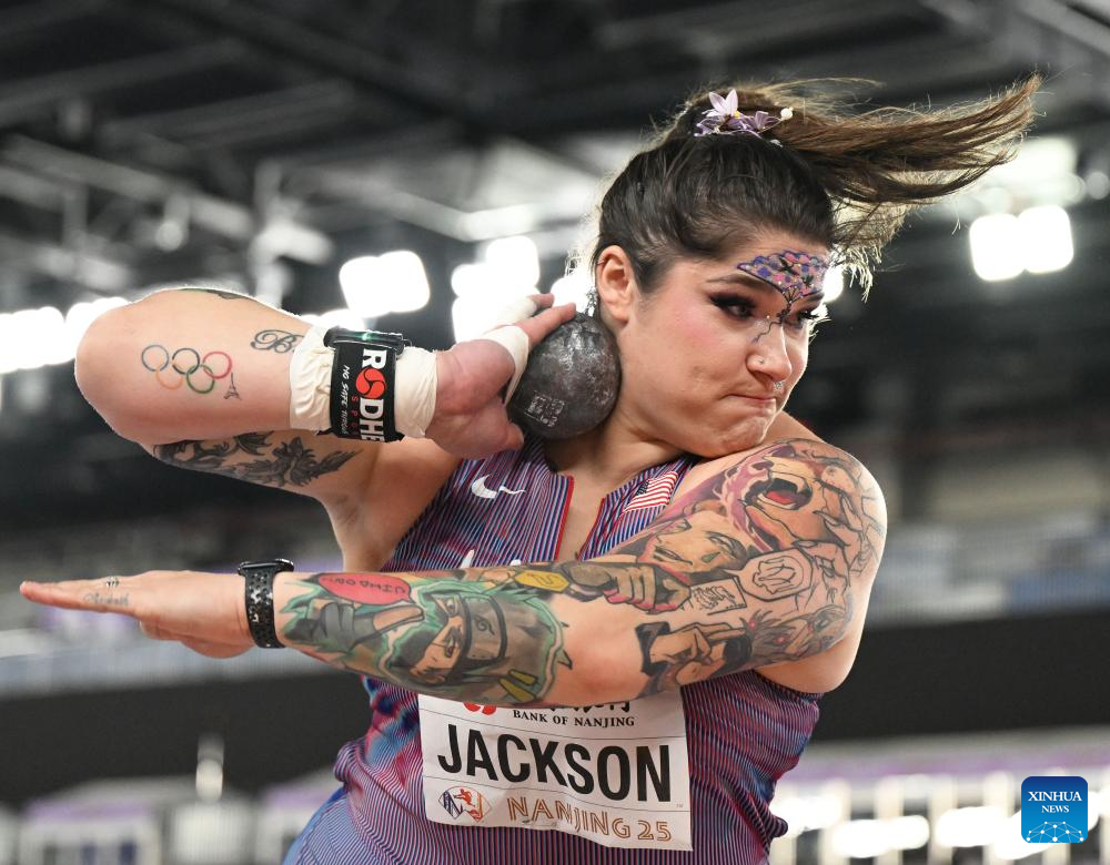 Chase Jackson of the United States competes during the women's shot put final at the 2025 World Athletics Indoor Championships in Nanjing, east China's Jiangsu Province, March 21, 2025. (Xinhua/Song Yanhua)