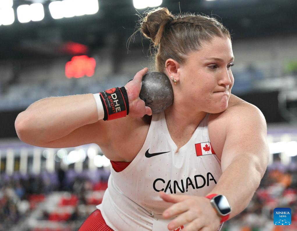 Sarah Mitton of Canada competes during the women's shot put final at the 2025 World Athletics Indoor Championships in Nanjing, east China's Jiangsu Province, March 21, 2025. (Xinhua/Song Yanhua)
