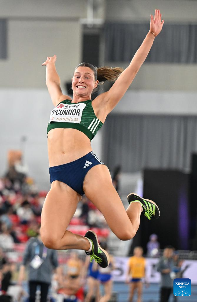 Kate O'Connor of Ireland competes during the women's pentathlon long jump at the 2025 World Athletics Indoor Championships in Nanjing, east China's Jiangsu Province, March 21, 2025. (Xinhua/Song Yanhua)