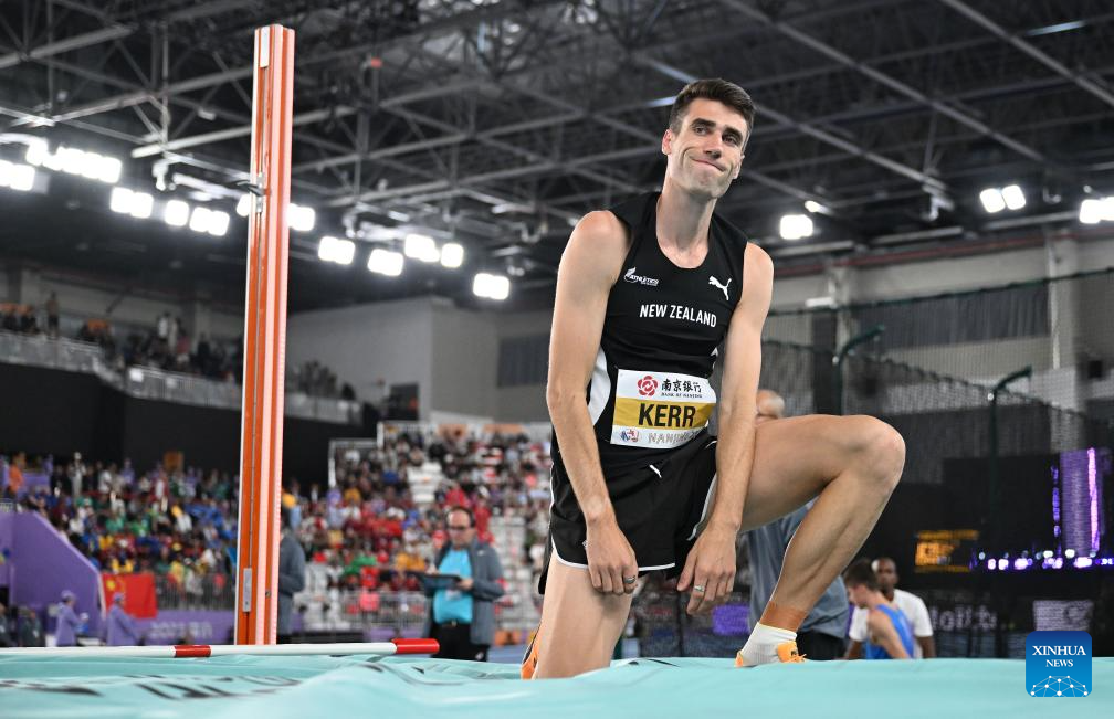 Hamish Kerr of New Zealand reacts during the men's high jump final at the 2025 World Athletics Indoor Championships in Nanjing, east China's Jiangsu Province, March 21, 2025. (Xinhua/Yang Lei)