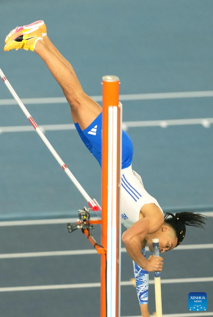 Emmanouil Karalis of Greece competes during the men's pole vault final at the 2025 World Athletics Indoor Championships in Nanjing, east China's Jiangsu Province, March 22, 2025. (Xinhua/Yang Lei)