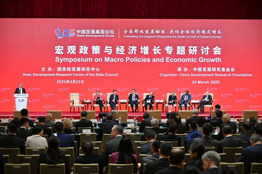 Lu Hao, chair of the China Development Forum (CDF) 2025 and director of the Development Research Center of the State council, presides over the opening ceremony of the CDF 2025 in Beijing, capital of China, March 23, 2025. (Xinhua/Li Xin)Co-Chair of the China Development Forum (CDF) 2025 and Siemens AG president and CEO Roland Busch speaks during the opening ceremony of the CDF 2025 in Beijing, capital of China, March 23, 2025. (Xinhua/Li Xin)Participants attend the China Development Forum 2025 in Beijing, capital of China, March 23, 2025. (Xinhua/Li Xin)Participants attend the China Development Forum 2025 in Beijing, capital of China, March 23, 2025. (Xinhua/Li Xin)This photo taken on March 23, 2025 shows the Symposium on Macro Policies and Economic Growth of the China Development Forum 2025 in Beijing, capital of China. (Xinhua/Li Xin)Participants talk before the opening ceremony of the China Development Forum 2025 in Beijing, capital of China, March 23, 2025. (Xinhua/Li Xin)Participants talk during a tea break of the China Development Forum 2025 in Beijing, capital of China, March 23, 2025. (Xinhua/Li Xin)■