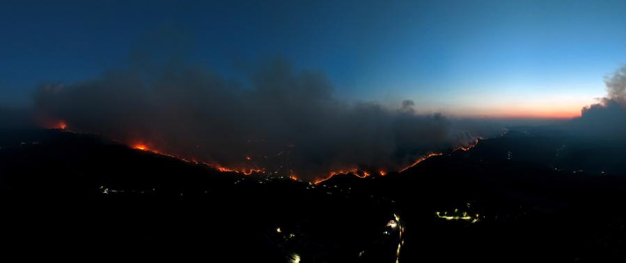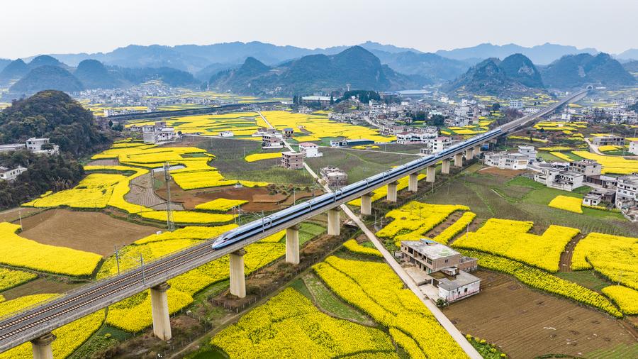 An aerial drone photo shows a high-speed train passing by flowering canola fields in Huachu Town, Puding County, Anshun City, southwest China's Guizhou Province, March 22, 2025. (Xinhua/Tao Liang)Staff members of the Luogu River hydrological station conduct a monitoring operation in Mohe, northeast China's Heilongjiang Province, March 21, 2025. Established in 1987 and located in Mohe, the Luogu River hydrological station is China's northernmost hydrological station. The Ergun River from China's Inner Mongolia Autonomous Region and the Shilka River from Russia merge here into the Heilongjiang River, the boundary river between China and Russia. The staff members here brave the coldness to collect hydrological data, ensuring the water safety of the river. (Xinhua/Zhang Tao)Armand Duplantis of Sweden reacts after clearing 6.15m during the men's pole vault final at the 2025 World Athletics Indoor Championships in Nanjing, east China's Jiangsu Province, March 22, 2025. (Xinhua/Yang Lei)People lay flowers to the monument for victims of the terrorist attack near the Crocus City Hall in suburban Moscow, Russia, on March 22, 2025. On March 22, 2024, a terrorist attack at Moscow's Crocus City Hall concert venue, followed by a massive fire, resulted in at least 144 deaths and 551 injuries, according to official statistics. (Photo by Alexander Zemlianichenko Jr/Xinhua)This photo taken on March 22, 2025 shows a wildfire in North Gyeongsang province, South Korea. The South Korean government declared a state of disaster on Saturday over wildfires that broke out in the country's southeastern areas including Ulsan city, North Gyeongsang province and South Gyeongsang province, the Ministry of the Interior and Safety said. (NEWSIS via Xinhua)People look at deep-sea manned submersible Fendouzhe (Striver) aboard Tansuo-1 research vessel during a Concluding Open Day of a joint China-New Zealand dive expedition in Wellington, New Zealand, March 21, 2025. Chinese and New Zealand scientists have successfully concluded a groundbreaking collaborative dive expedition to the Puysegur Trench, supported by the Chinese Academy of Sciences (CAS) Global Trench Exploration and Diving program (Global TREnD). (Xinhua/Long Lei)This photo taken on March 22, 2025 shows the lightning over the skyline of Kuwait City, Kuwait. (Photo by Asad/Xinhua)■